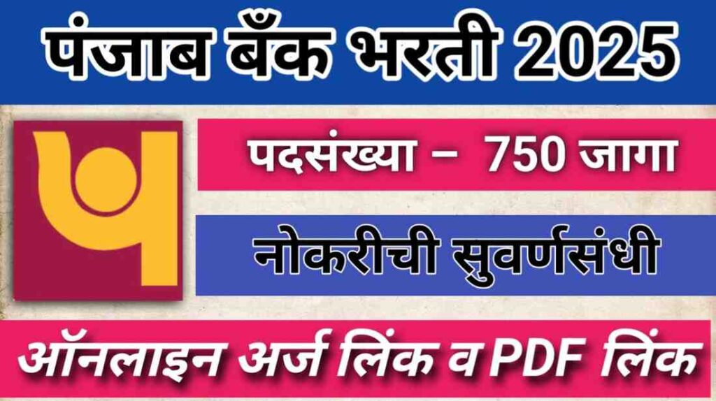 पंजाब बँकच्या ही भरती घेण्यात येत आहे. ह्या बँकेमध्ये नोकरी करण्यासाठी माणसे खूप उत्सुक आहेत. नुकतीच PNB द्वारे 750 स्थानिक बँक अधिकारी पदांसाठी नवीन Punjab Bank Bharti 2025 ही भरती जाहिरात प्रसिद्ध करण्यात आली आहे. सरकारी बँकेत कायमस्वरूपी नोकरी मिळवण्याची ही अत्यंत उत्तम संधी आहे.